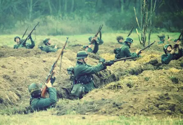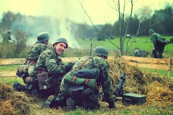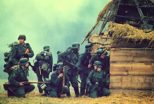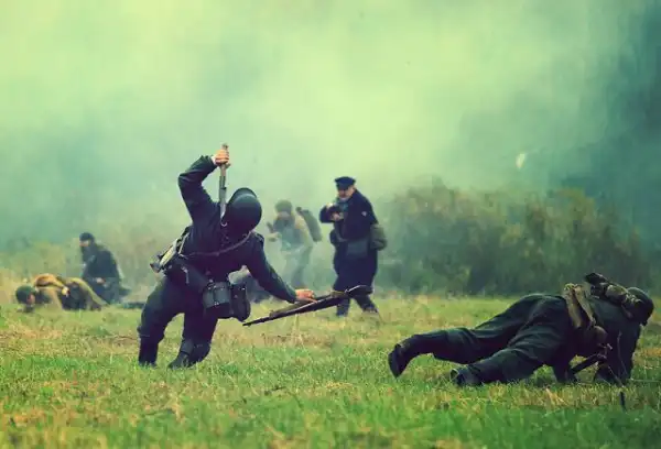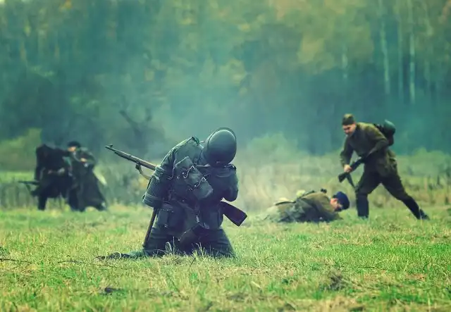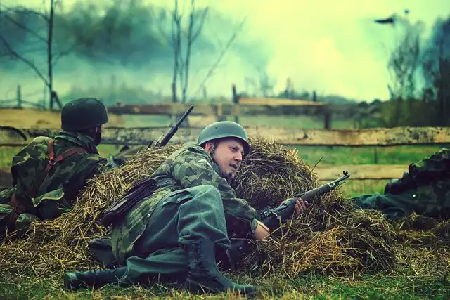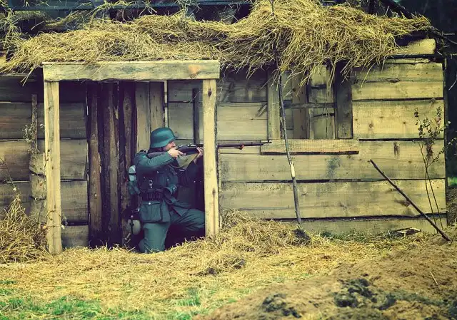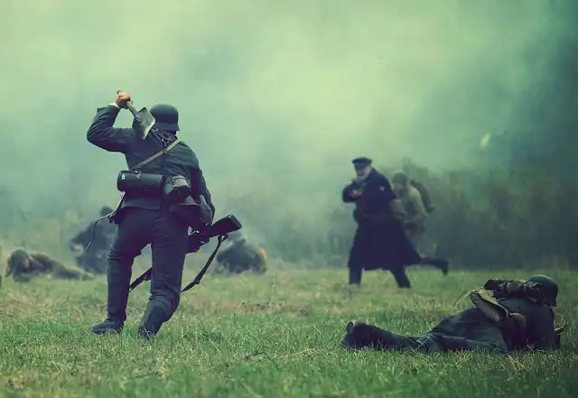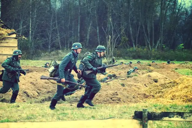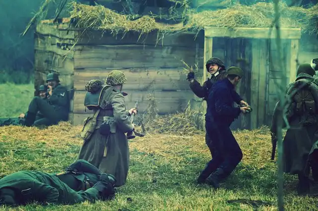 Сценарий реконструкции в этом году отличался от предыдущих лет. На этот раз "войска Вермахта" изначально удерживали "деревню", а "солдаты Красной армии" вынуждены были выбивать противника с хорошо укрепленных позиций.