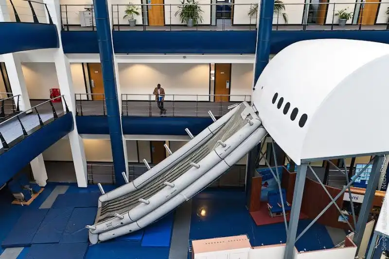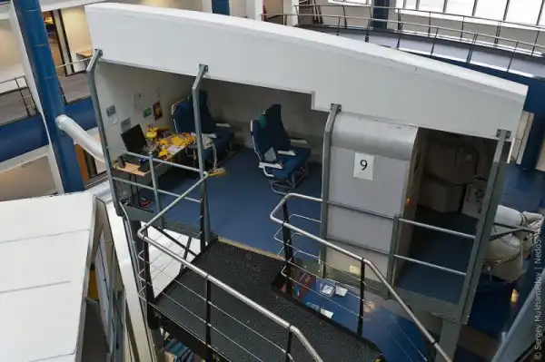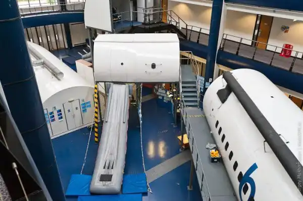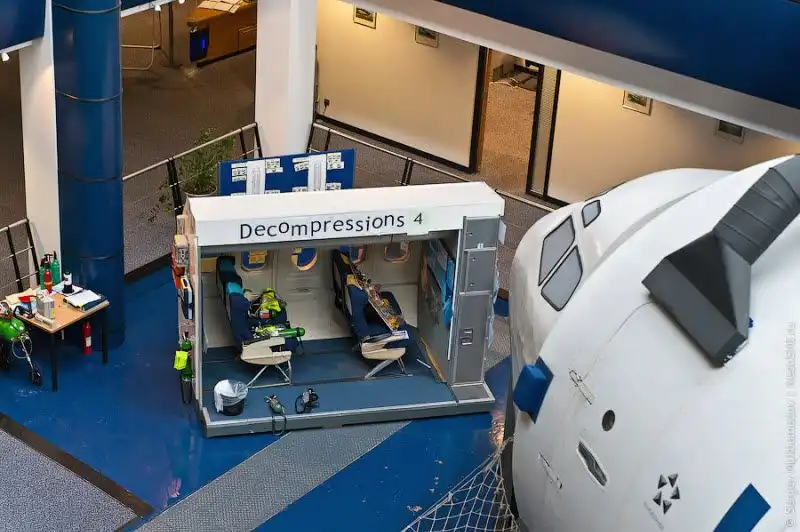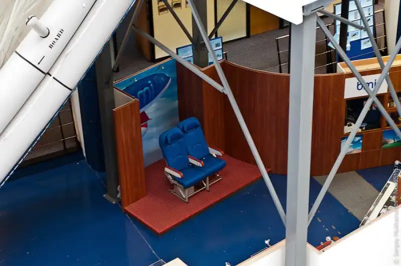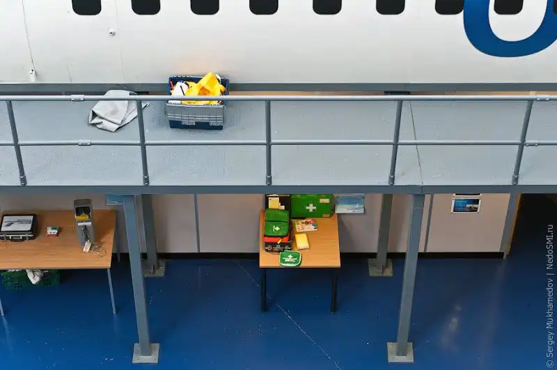 И когда мне представился случай одним глазком взглянуть на такой тренировочный центр - я не раздумывая согласился. И пусть я там пробыл всего 5 минут и съемку разрешили только с 3 этажа атриума общими планами без сотрудников и не во время обучения, я все понимаю: терроризм, секретность, посторонние не должны знать, как будет действовать персонал. Но мне стало спокойнее, теперь я знаю, что стюардессы умеют не только разносить еду и проверять пристегнуты ли ремни."