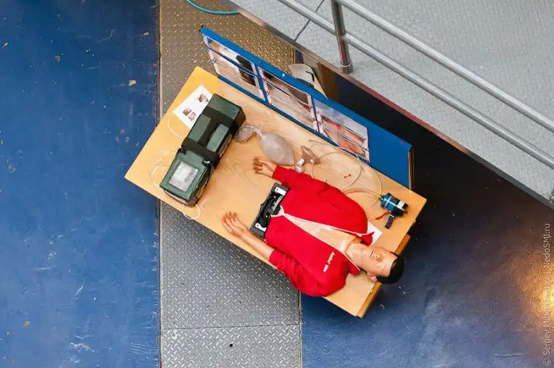 надевать наручники на разбуянившихся, запускать сердца дефибриллятором умершим и плавать в бассейне в спасательном жилете, "распугивая акул свистком"."