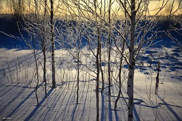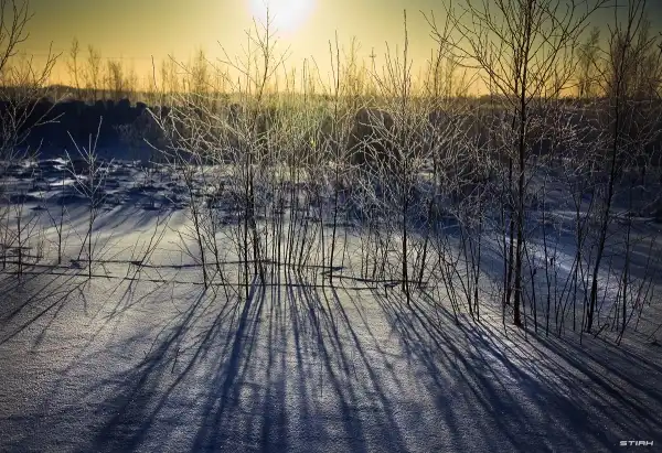 Низкое солнце, вытягивает тени, брагодаря чему, можно подкараулись занятный узор на снегу.