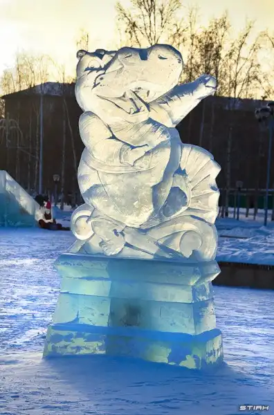 Недалеко от ледяных скульптур встречабтся весьма популярные образцы скульптурного творчества