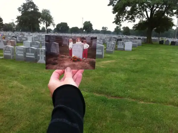 Мы уже выросли из этих одежек, но мы постоянно навещаем здесь папу.
