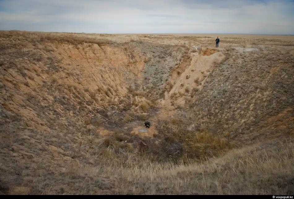 Еще одна “достопримечательность” полигона. В этом месте подорвали первую советскую атомную бомбу в 1949 году