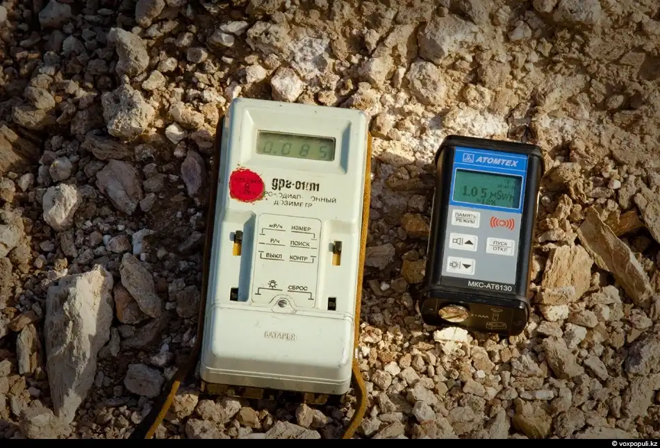 Специалисты ИРБЭ (Институт радиационной безопасности и экологии Национального ядерного центра РК) говорят, что заряд был “чистый”, и поэтому разброс радиоактивных изотопов на объекте минимален. Любопытно, что вода в “атомном" озере чистая, и там даже водится рыба. Однако, края водоема "фонят" настолько сильно, что их уровень излучения фактически приравнивается к радиоактивным отходам. В этом месте дозиметр показывает 1 микрозиверт в час, что в 114 раз больше нормы