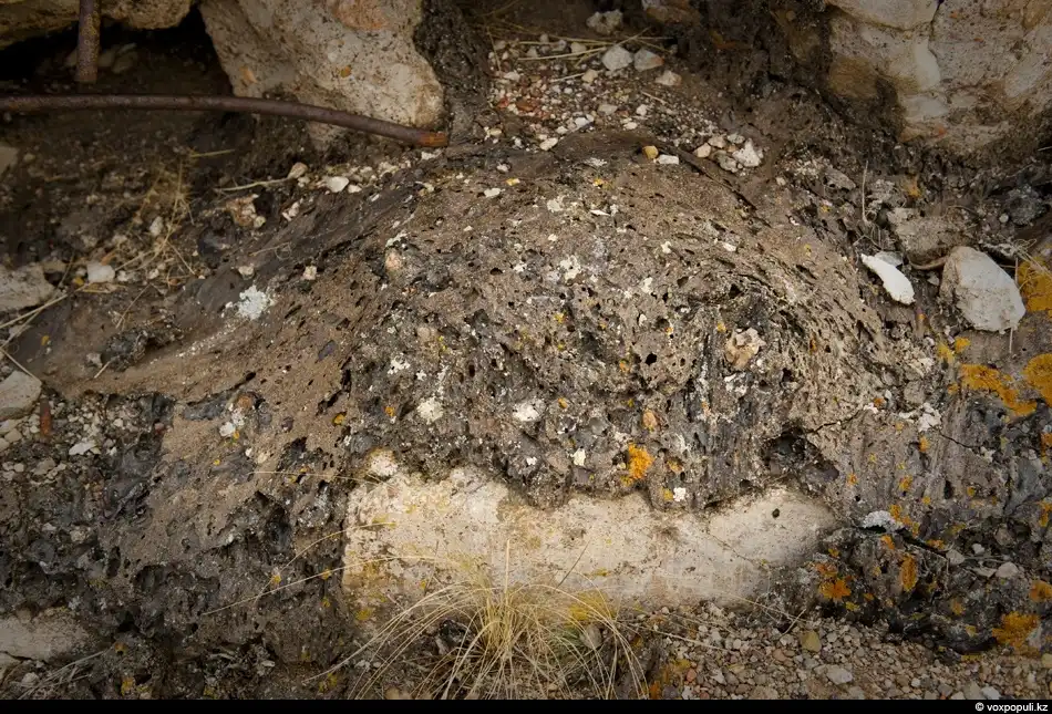 Эта стекловидная масса, как утверждают специалисты, находилась в непосредственной близости от термоядерного заряда. Колоссальное давление и температура превратили гранит в некое подобие вулканической пемзы