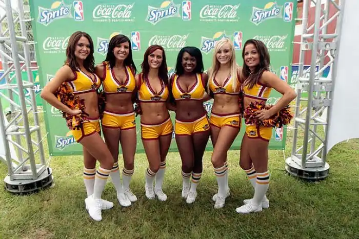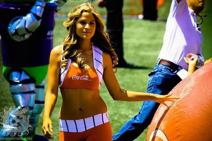 Очень милые девушки, которые танцуют на спортивных состязаниях в солнечной Мексике.