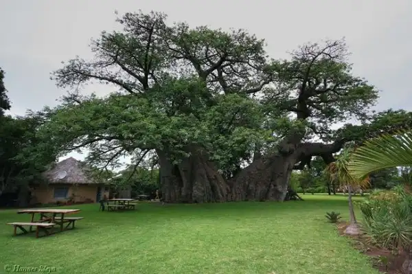 Баобаб Sunland Baobab один из самых известных баобабов в Южной Африке. Имея длину окружности 33 или 47 метров и высоту 18-22 он также является одним из крупнейших в своём роде. Несмотря на неточности в расчётах, думаю, вы согласитесь, что он баобаб на фотографии огромен. О егго размерах можно судить и потому факту, что внутри него смог легко разместиться небольшой паб. Может быть именно из-за этого баобаб Sunland Baobab является самой популярной достопримечательностью в районе своего местонахождения. Что интересно, дерево никто специально не долбил, полость внутри него имеет естественное происхождение. Небольшой паб внутри неё был оборудован в 1933 году. Помещение паба способно вместить 15 человек. Дерево находится на ферме, принадлежащей семье Van Heerden, которые и ухаживают за ним.