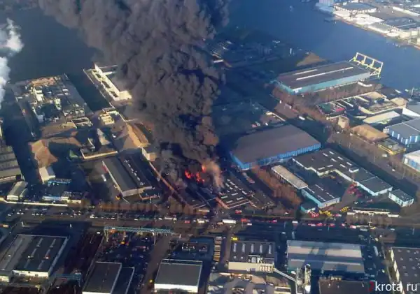 Огромный пожар на химической фабрике в Нидерландах.