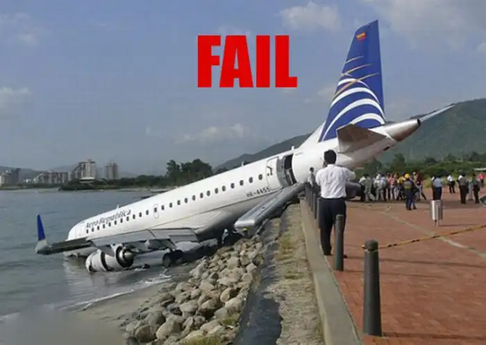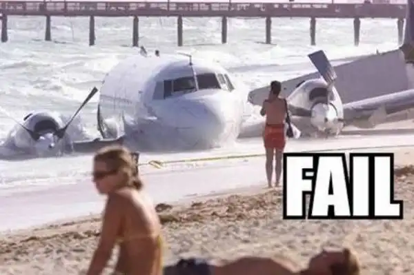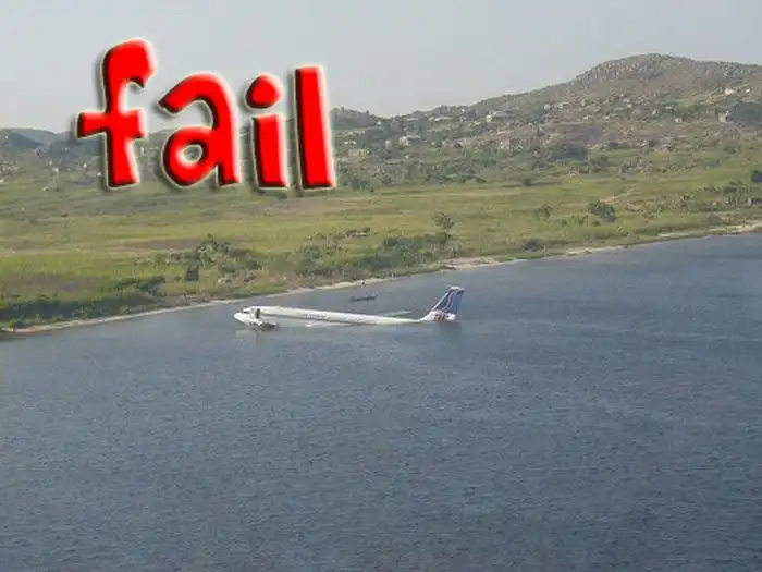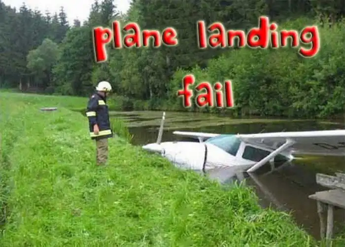 Порой пилоты совершают ошибки и садят свой самолет не долетая до взлетно-посадочной полосы.