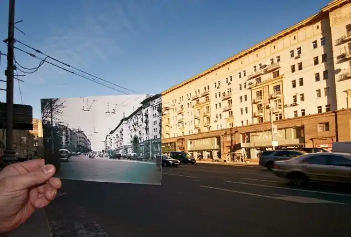 Один парень прогулялся по столице с ее фотографиями 1956 года.