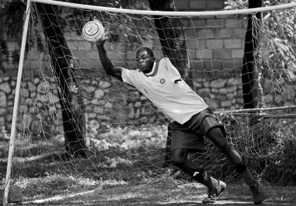 29-летний вратарь Эриел Валембран ждет, пока соберется вся команда на тренировку, в Порт-о-Пренс. (Photo by Leah Millis)