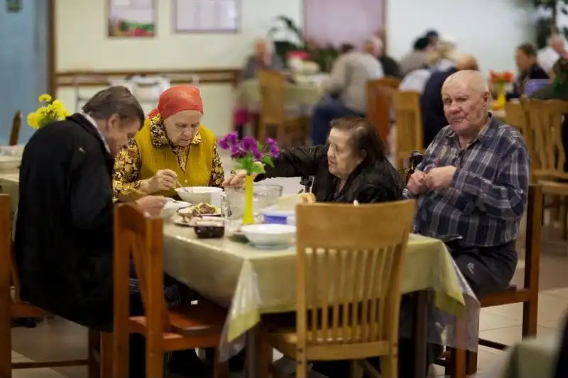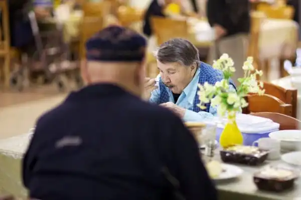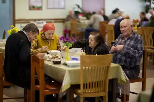 Время обеда. Жизнь в медико-социальном доме не пестрит разнообразием. Люди здесь живут, болеют, общаются. Это учреждение считается одним из лучших в стране. Социальные работники стараются морально поддержать людей, оказавшихся здесь по воле судьбы.