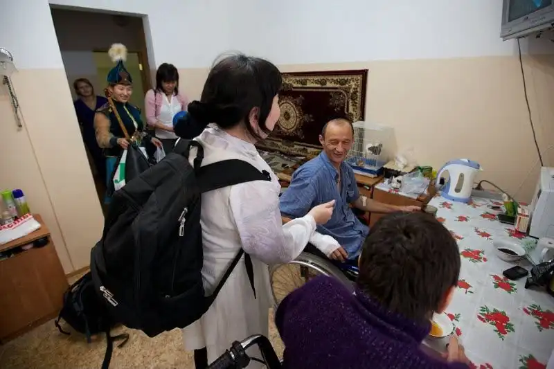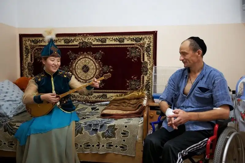 Наша история начинается с приезда в Медико-социальное учреждение для престарелых и инвалидов города Астана, располагающееся в жилом массиве "Коктал-1". Оно предназначено для одиноких людей, достигших пенсионного возраста, и инвалидов I, II групп, требующих постоянного ухода. Сейчас там проживают 340 подопечных.
