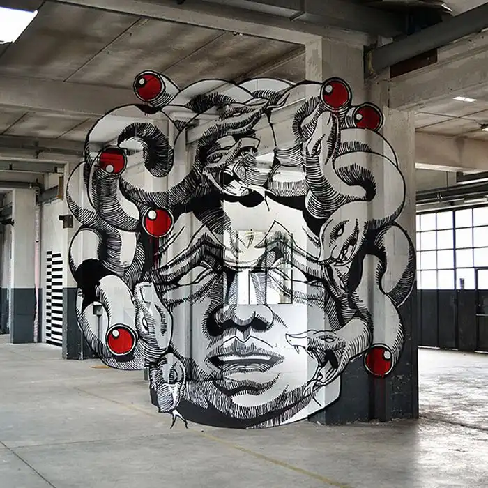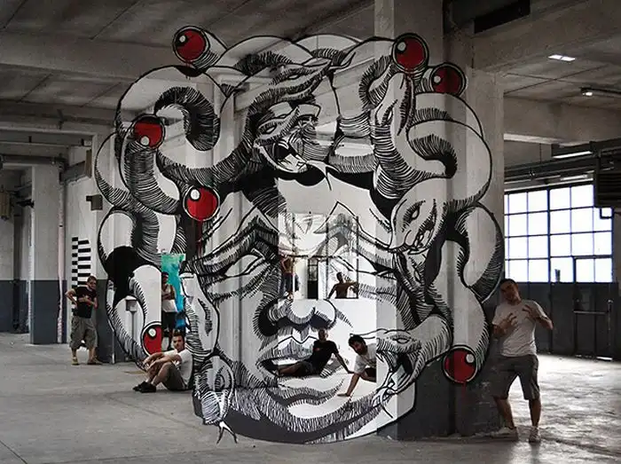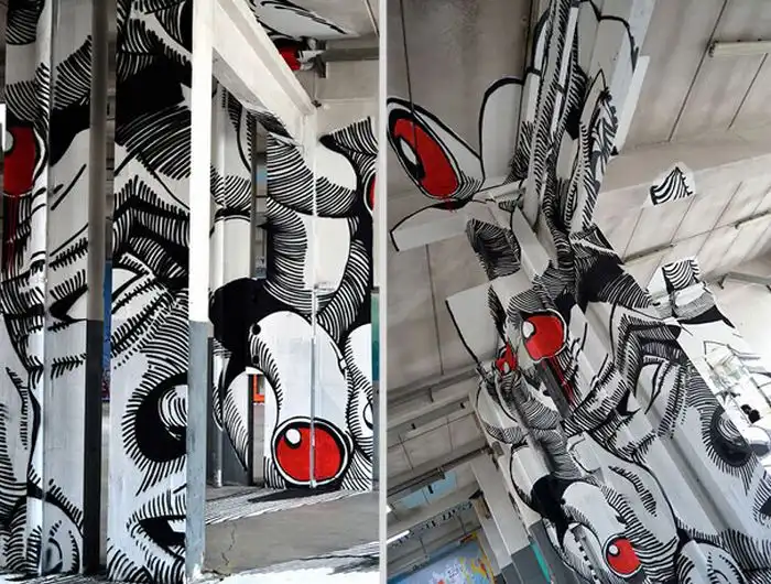 Интересное граффити, которое можно увидеть только под определенным углом.