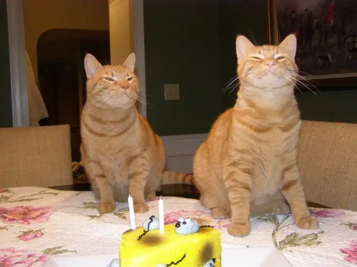 Два кота расплылись в улыбке после того, как попробовали именинный торт :)