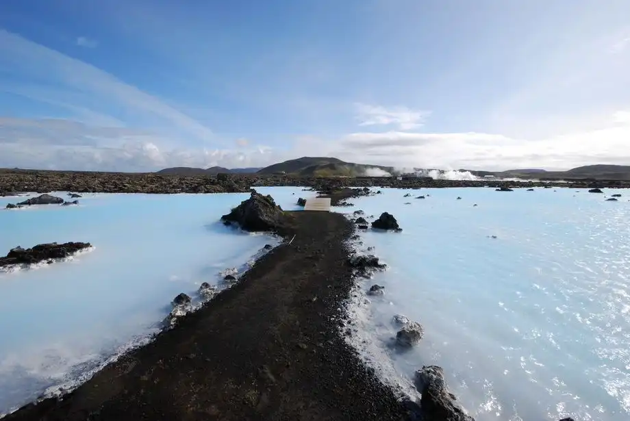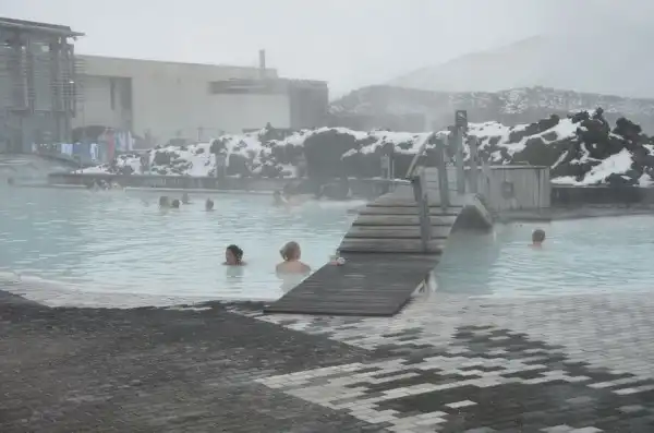 Голубая лагуна находится в 15-ти минутах езды от международного исландского аэропорта Кефлавик, поэтому ее обычно посещают по прилету или по отлету. По прилету – нормально, но по отлету – не надо точно, так как вода очень сильная, надо хорошо мыться и переодеваться в отеле, иначе будет очень некомфортно лететь. До купания согласно местному распорядку тоже надо мыться.