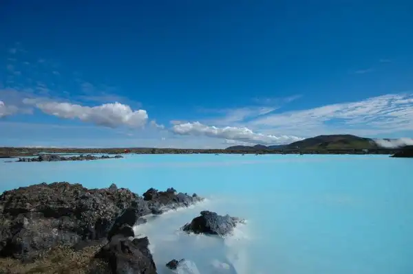 Вокруг лагуны располагаются живописные поля из вулканической лавы, поросшие мхом. Среди застывшей лавы можно встретить реки с кипятком.
