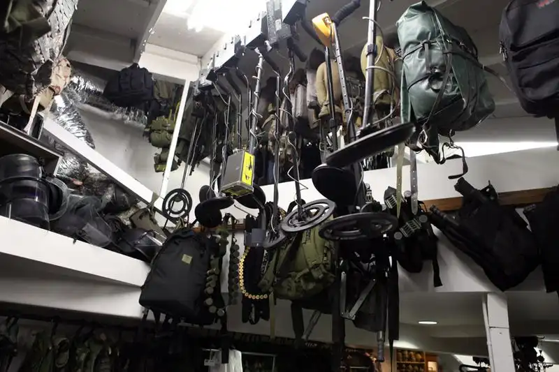 Металоискатели. Скорей всего тоже пластиковые. Висели высоко, не прощупать.
