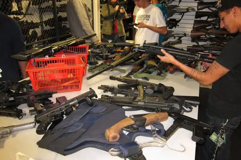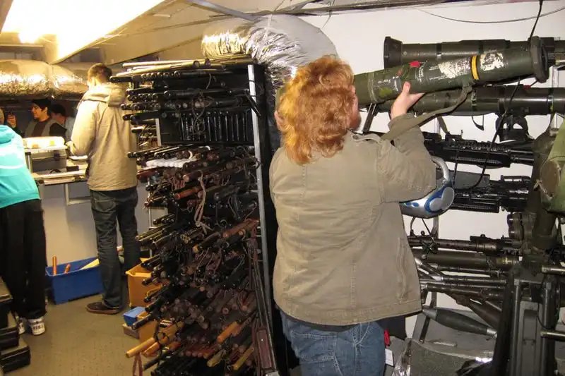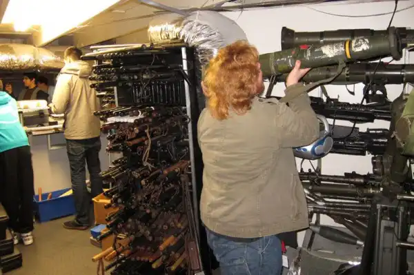 Оружейная палата... Его там столько, сколько в оружейном магазине нету. Несколько комнат сверху до низу набиты различными пистолетопулеметами. Студенты как дети налетели.