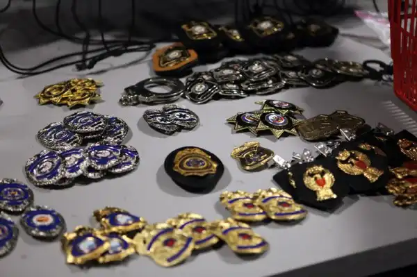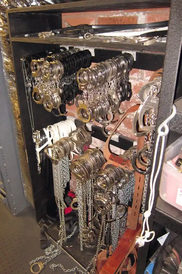 Хотите поиграть в плохого и хорошего шерифа - да пожалуйста. Слева, сразу за дверью LESTER 10 рядов ящиков с бляшками. На реальные похожи безумно. В этой комнате вообще столько неотличимых от оригиналов спецвещей, которые в ушлых руках могут наделать много шуму, что она единственная всегда закрыта. Ее открывают только по запросу клиента и осмотр инвентаря происходит только в присутствии работника склада.