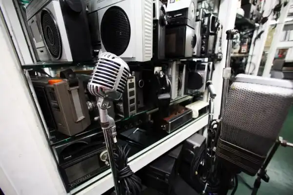 Студийного оборудования завались. И все такое красивенькой, хромированное, блестящее, раритетное.