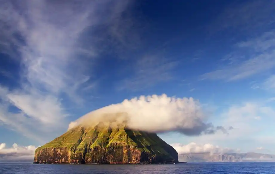 Луйтла-Дуймун — самый маленький из 18 Фарерских островов, расположенных между Шотландией и Исландией. Площадь острова - 0,8 кв.км, наивысшая точка — гора Раван высотой 414 метров. Остров необитаем, за исключением тех нередких случаев, когда его опоясывают облака или оседают сверху в виде шапки