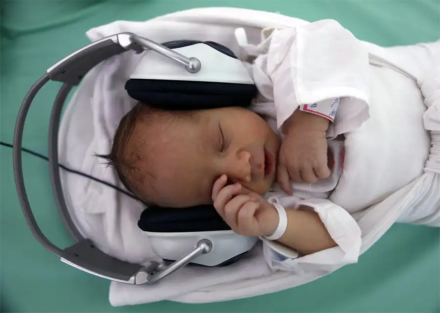 Новорожденный малыш слушает музыку в больнице Кошице. В этой больнице используют музыку в качестве терапии для малышей, разлученных с мамами. © Petr Josek/Reuters