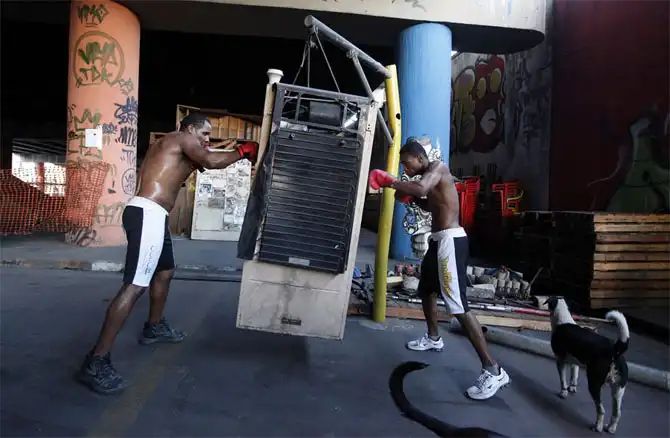 Американские солдаты в импровизированном спортзале на заставе в провинции Гильменд в Афганистане.