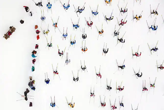 Спортсмены и зрители во время лыжного марафона в швейцарском регионе Энгадин.