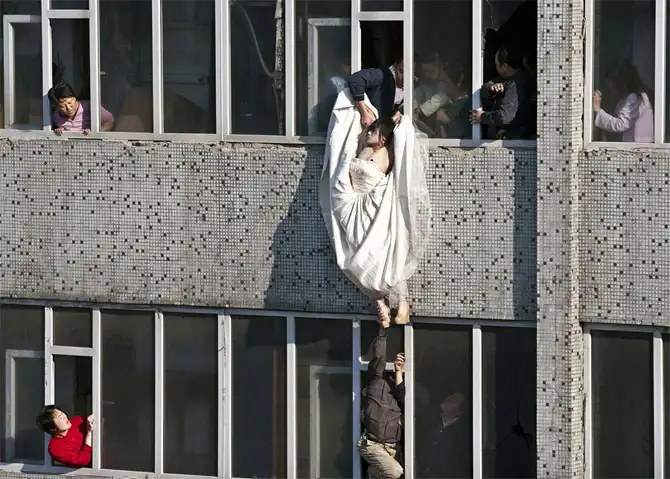 22-летнюю китаянку, пытавшуюся выброситься из окна из-за ссоры с женихом, спасли в последний момент.