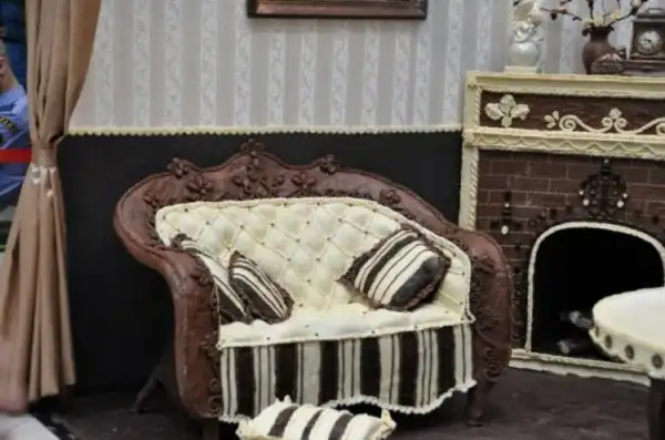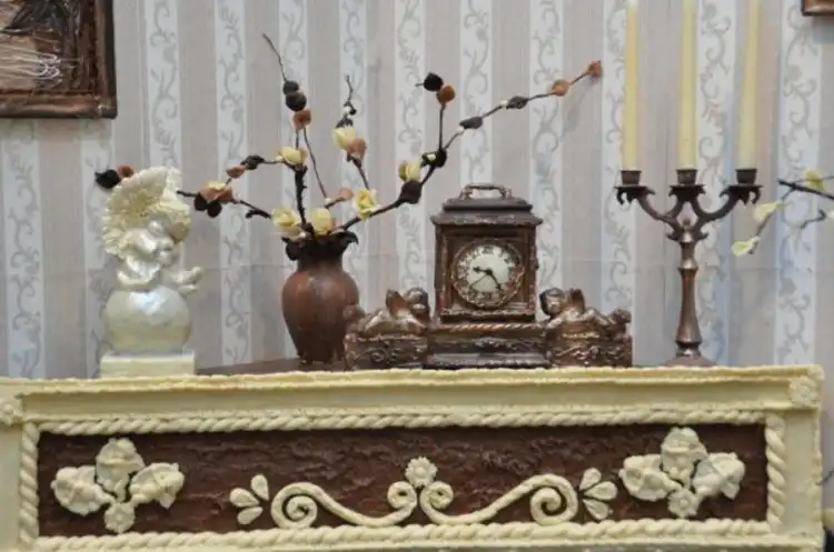 1. Всего из шоколада было выполнено 54 предмета, в том числе и ковер, посуда, картины, вилки и ножи.