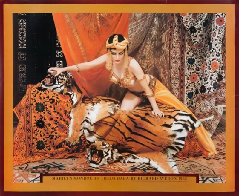 17. На этом плакате Монро представлена в образе Теды Бары. Автор снимка Ричард Авендом. Фотосессия, в ходе которой Мэрилин примеряла на себя образы легендарных актрис, состоялась в 1958 году. Часть снимков была опубликована в журнале LIFE. Размеры фотографии: 58,4 см на 71,1 см. Цена: от 200 до 400 долларов