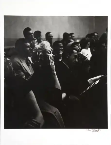 18. Черно-белая фотография, изображающая Монро в помещении The Actors Studio, была сделана Роем Шаттом. Снимок подписан автором, с обратной стороны отмечен его штампом. Размеры снимка: 50,8 см на 40,6 см. Цена: от 800 до 1200 долларов.