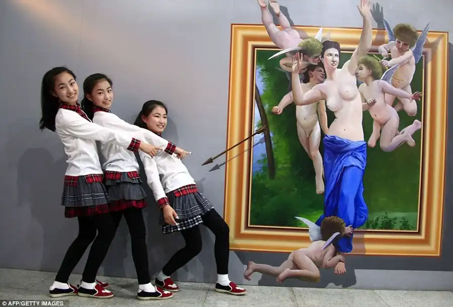На северо-востоке Китая, в провинции Цзилинь прошла интерактивная выставка 3D картин популярного художника Ай Вэйвэй. Посетители с удовольствием фотографируются с экспонатами современного искусства.