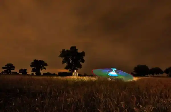 Для создания такого снимка потребуется фотоаппарат с долгой выдержкой, фонарики и светодиоды.