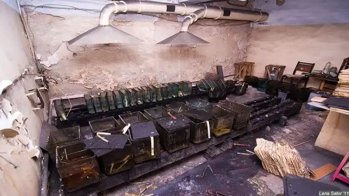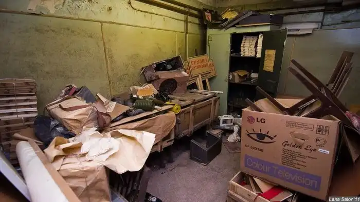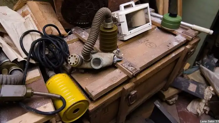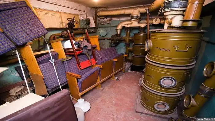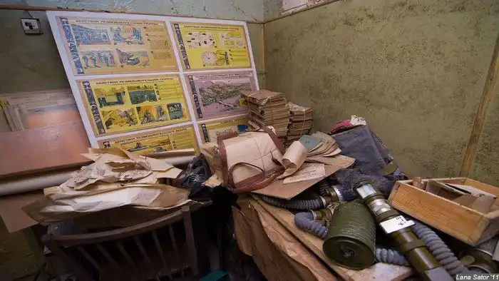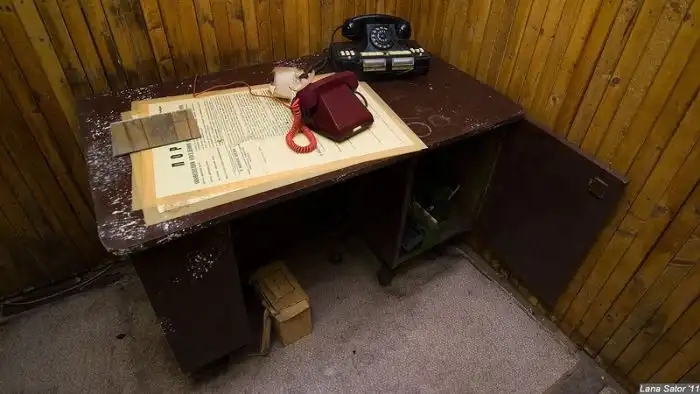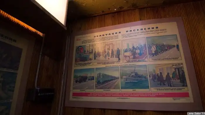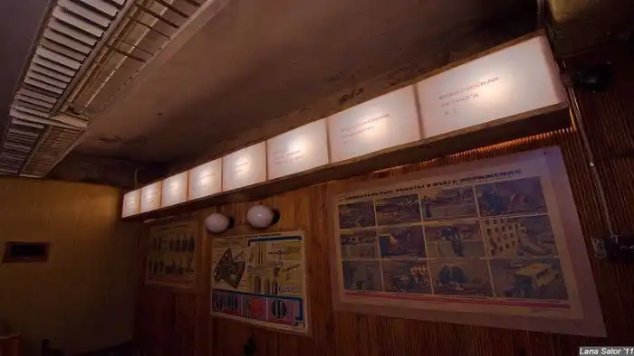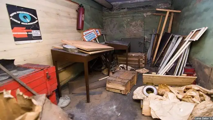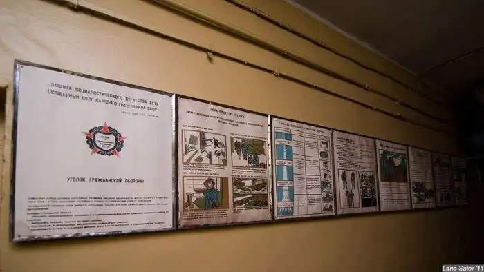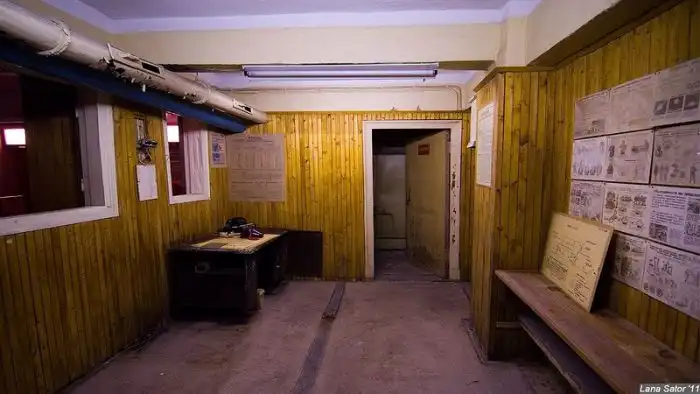 На территории одного из пансионатов, под зданием, где располагалась администрация, находится бункер. Судя по всему про него забыли, состояние помещений не поддерживается и только лишь стенды, мебель и отделка стен отличают бункер от обычного подвала.
