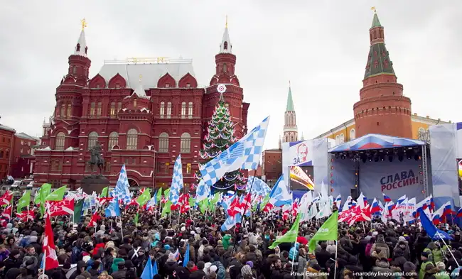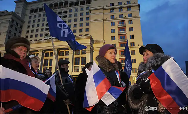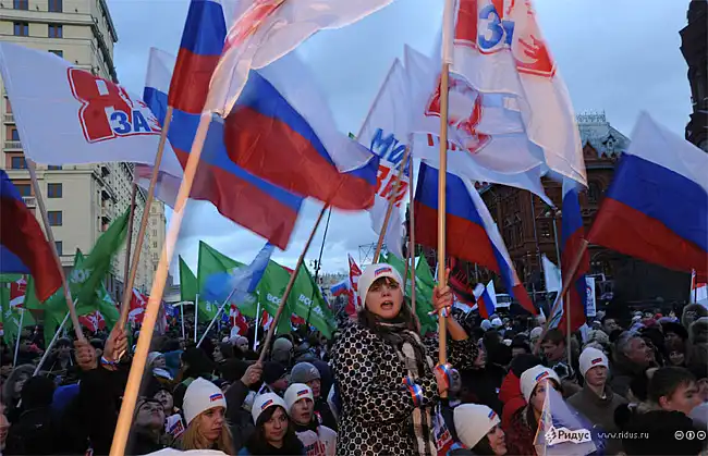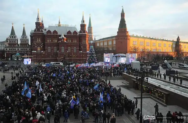 Вчера 12.12.2011 в Москве на Манежной площади прошел митинг сторонников Владимира Путина и Дмитрия Медведева - Слава России!, посвященный Дню Конституции.