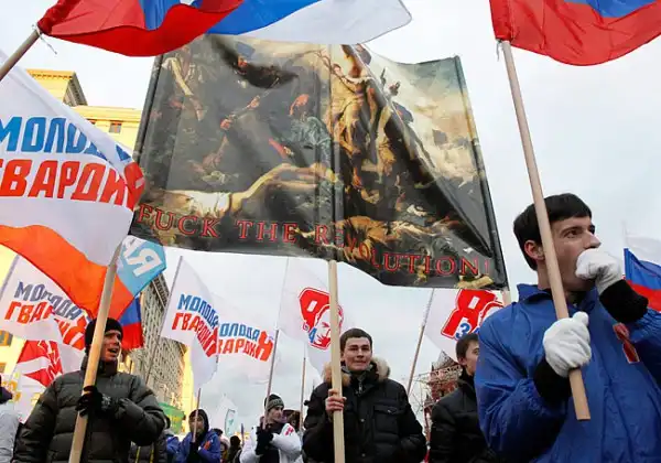 Митингующие стояли под флагами Единой России, Молодой гвардии, Федерации независимых профсоюзов (ФНПР) и других общественных организаций. Отпраздновали День конституции таким образом молодежные движения Молодая Гвардия, Сталь, Местные, Россия молодая и конечно Наши - без которых не обходится ни одна акция в поддержку партии власти.