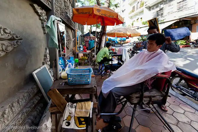 Все «удобства» в соседних кустах. Дети учатся в сараях, вместо школ. Часть людей живет на воде и в гости друг к другу ездят на лодках. В Пномпене – столице Камбоджи – парикмахерские кресла стоят прямо на тротуарах, как в Индии… (c) sergeydolya