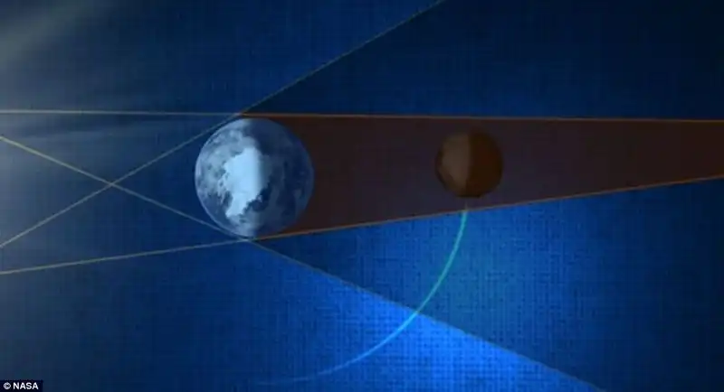 Солнечный свет все же мог проходить через атмосферу земли и отбрасывать мерцание на луну. Атмосфера отфильтровывает большую часть голубого света, оставляя ярко-красный и оранжевый. (NASA)