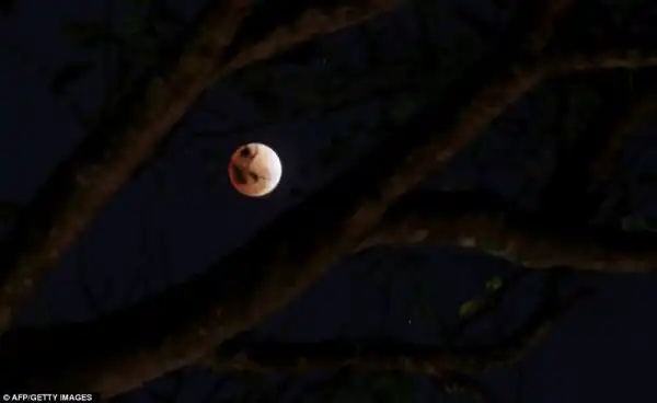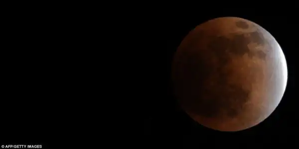 Лучшие места для обзора лунного затмения были у жителей западной части Америки, Гавайев, северо-западной Канады, Австралии, Новой Зеландии и центральной и восточной Азии. На фото: солнечный свет все еще проходит через атмосферу земли и отбрасывает тень на луну. (AP)