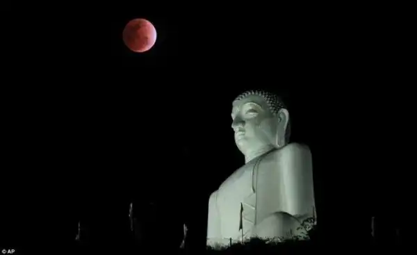Луна над статуей Будды в Курунегале, Шри-Ланка. (AP)
