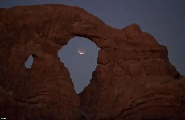 Затмение в природной арке в национальном парке Арки недалеко от Моаб в штате Юта. (AP)