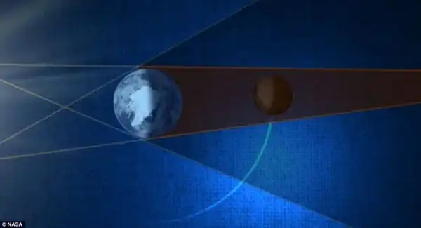 Луна проходит через тень, отбрасываемую Землей, из-за чего ее цвет меняется на какое-то время. (NASA)
