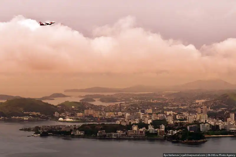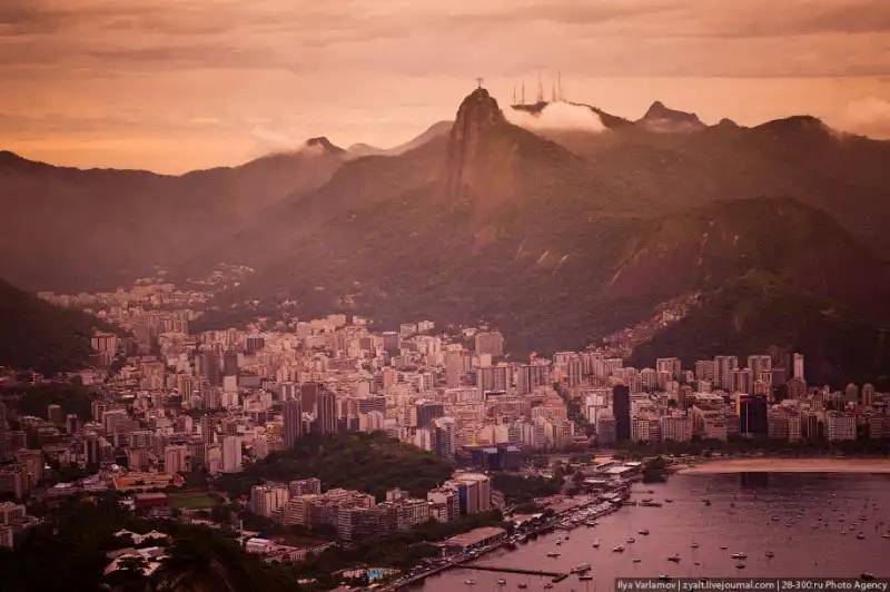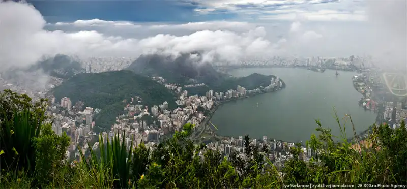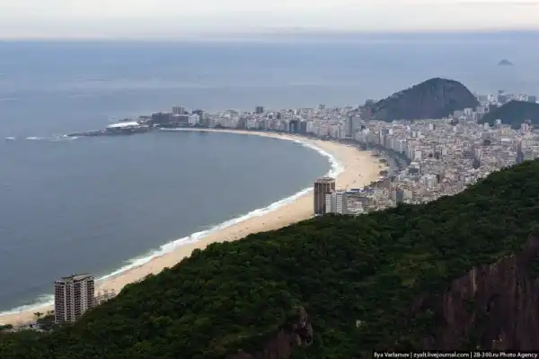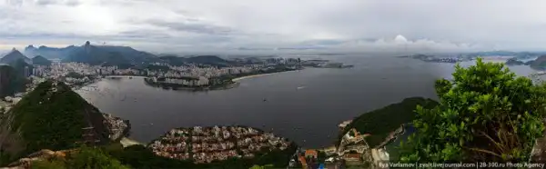 А это уже вид с Сахарной головы. Вершина, возвышающаяся над заливом Гуанабара в восточной части Рио, является одной из основных достопримечательностей города. Из-за своей необычной формы, которую бразильцы сравнивают с куском сахара, она получила название «Сахарная голова». По другой версии название идёт от фразы «paunh-acuqua», что на языке туземцев племени Тупи переводится как «Высокий холм» или «Страж залива».