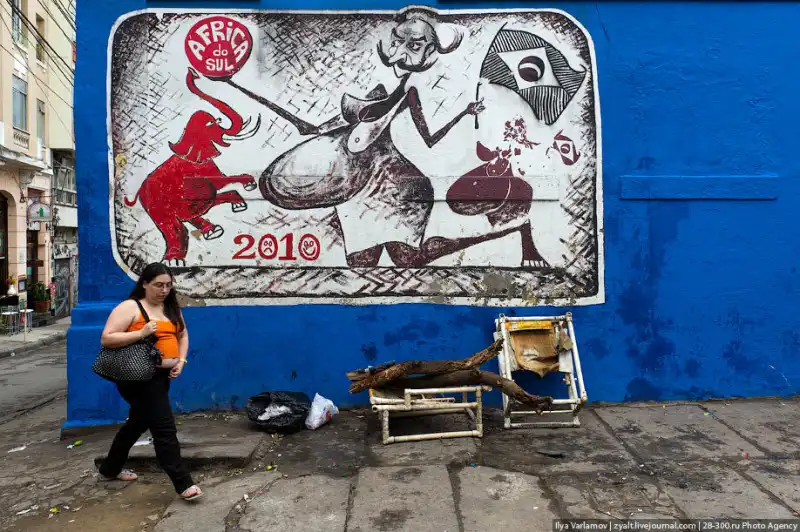 Эти истории рассказывала нам толстоватая Каролина, которую невесть зачем приставили к нам как гида. Наняв пару БТР и шестерых автоматчиков мы устремились в фавелы. Моя мама думает что это ресторан, но из фавел никто и никогда не выходил обратно с фотокамерой, кошельком и Каролиной, особенно если входил туда без всего этого. Только вот то ли фавелы были какие-то неправильные, то ли я слишком добр - но фотографии у меня получились какими-то совсем нестрашными и мимими. Нет того царящего обычно напряжения какое витает в воздухе на каждом более-менее злачном перекрестке в Бразилии. Может быть потому что местные шкидцы ушли орудовать в другие районы. Мы прошли всю фавелу Санта-Марта от верха, с вершины холма, до низа и лишь только в одном квартале «охрана» посоветовала не фотографировать встречающихся нам людей…"