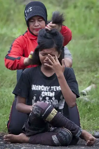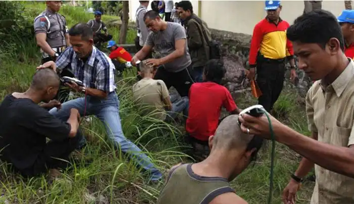 В участке их заставили снять все украшения, обстригли налысо и попросили искупаться в реке.
