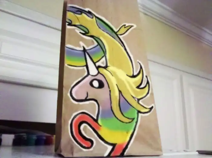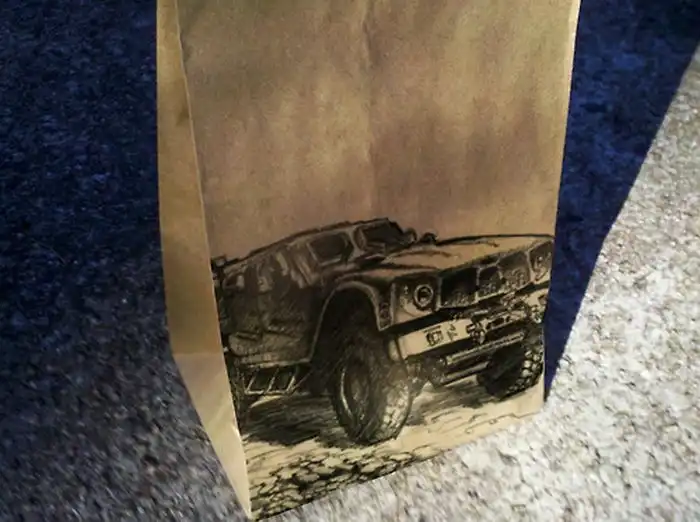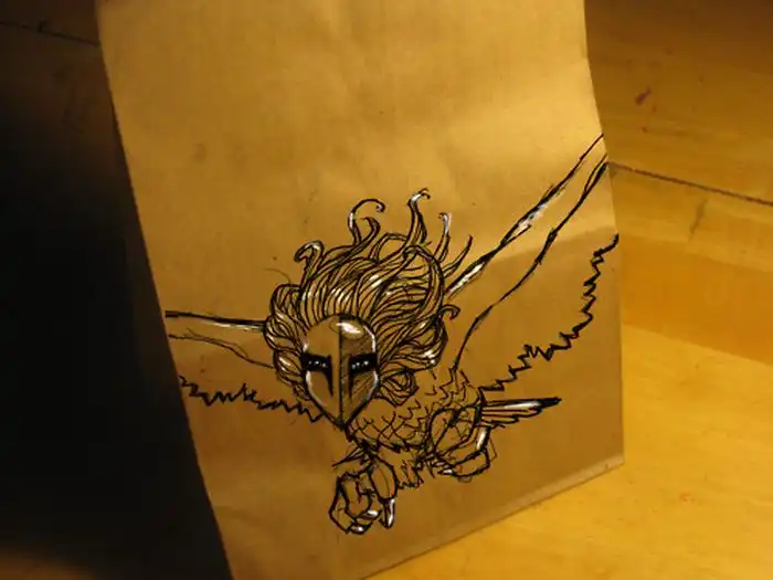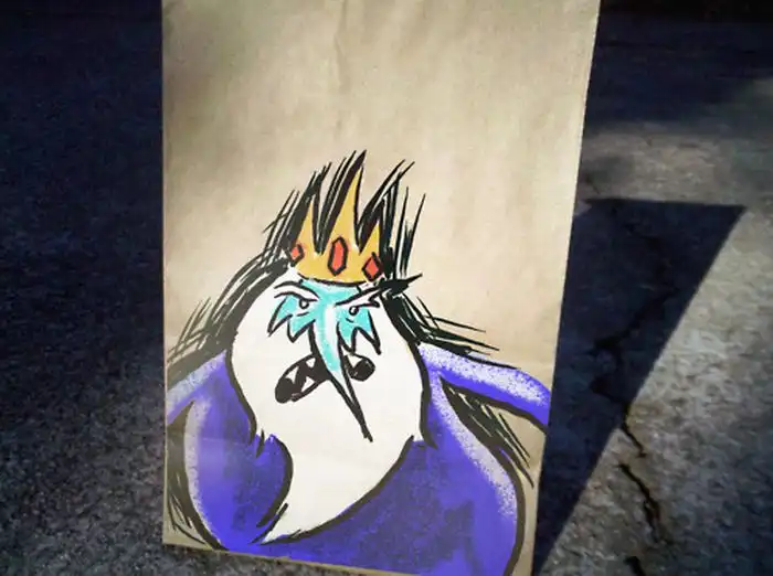 Прикольные рисунки на бумажных пакетах, в которые обычно упаковывают продукты.