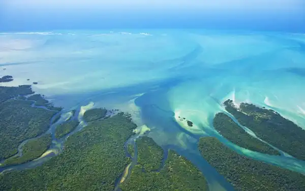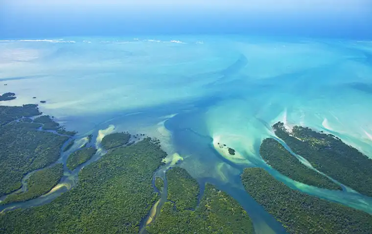 Вид с воздуха на архипелаг Куримбас, который является Всемирным наследием ЮНЕСКО. Архипелаг простирается вплоть до северной границы Мозамбика с Танзанией.