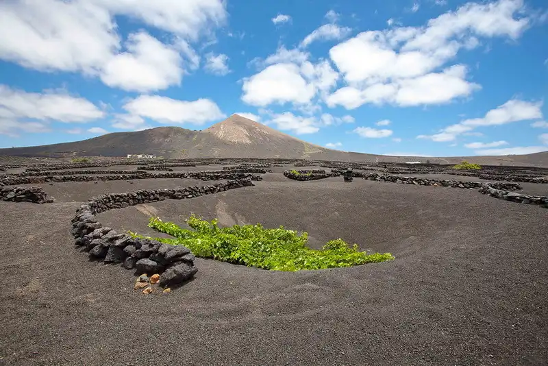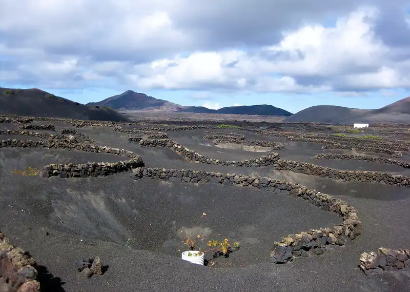 Остров Лансароте (Lanzarote) относится к Канарским островам (Испания). Его также называют «островом огнедышащих гор» — на небольшом острове длиной около 60 и шириной в 15 километров расположено около трехсот вулканов. Осенью 1730 года одновременно из тридцати кратеров начали вырываться лава и пепел. Извержение продолжалось шесть лет, и в результате треть острова покрылась безжизненным базальтом и пеплом. Это обстоятельство очень негативно сказалось на сельском хозяйстве Лансароте, но не остановило местных виноградарей, которые, в конце концов, приспособились успешно выращивать виноград прямо в вулканической пустыне.